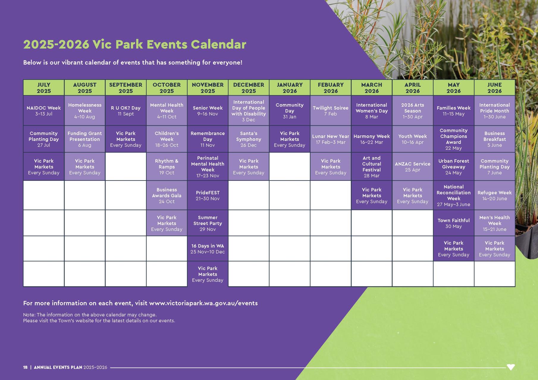 It details the main events delivered by the Town across a year, including our major events and the days of significance we will acknowledge.