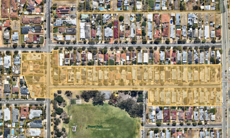 Image: The intended work area on Hampshire Street, between Berwick Street and Devenish Street.